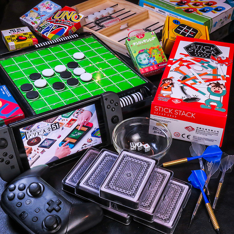 Switchにボードゲーム、本格的なダーツ台まで完備!朝まで飲み放題プランと合わせて楽しんでください!