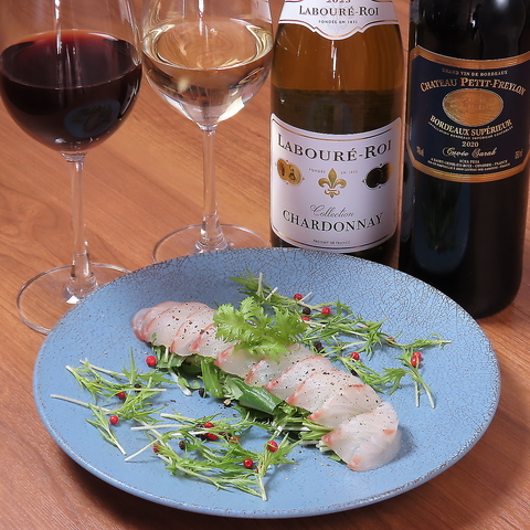 地元平塚の漁港から仕入れる新鮮な白身魚とワインの相性抜群です!【カルパッチョとワイン】