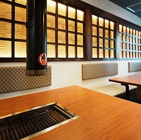 【テーブル席:2~12名様】ゆっくり食事や会話を楽しめる広々テーブル席。仕事帰りの一杯に加えて、親しい方との夕食にもぴったり。広々としたテーブル席はご家族での食事はもちろん、ご友人との飲み会や会社の宴会まで、様々なシーンでご利用いただけます。美味しい焼肉を囲んで、楽しいひとときをお過ごしください。