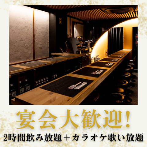 2時間飲み放題+カラオケ歌い放題★4,000円~/3種串盛り、数品付き(その日によってご提供内容が変わります)