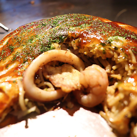 先代から受け継いだこだわりのレシピを使用した当店のお好み焼き!中でも人気なのは「まとちゃんスペシャル」で、プリプリの牡蠣を3粒使用し、香り高いしそとモチモチのお餅をトッピング♪濃厚な海の幸と、ふんわりとした生地の絶妙なバランスをお楽しみいただけます!こだわり抜いた味わいをぜひご堪能ください♪
