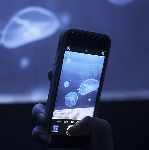 店内には、巨大水槽2つに加えて、各席に海月ミニ水槽を設置しておりどの席からも海月を見ることができます