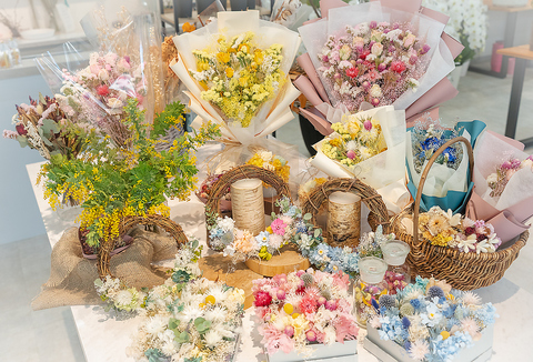 生花のブーケや切り花はもちろん、私たちローランズが最も大切にしている「みんなみんなみんな咲け。」の想いを表現したドライフラワーやリースもご用意しています♪