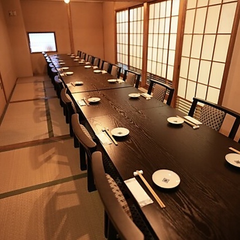 ふすまで仕切れるテーブル席は個室としての利用も可能。最大23名様までご利用いただけます。人数やシーンに合わせてレイアウトの変更も承りますので、まずはお気軽にご相談ください。