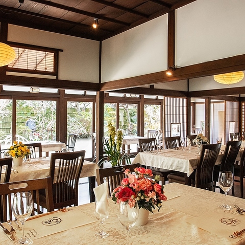 約800坪の日本庭園と築150年の古民家が織りなす、趣と大景観を眺めながら四季折々の食材をお楽しみください