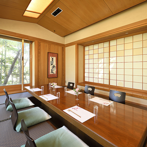 商談・接待・お見合い・結納...など大切な方へのおもてなしには欠かせない、完全個室も4部屋ご用意しております。お座敷は掘りごたつ式になっており、腰の悪い方でも安心してご利用いただけます。また、お子様のハレの日や記念日でのご利用も大歓迎。自然に囲まれた閑静な離れで、心おきなくお楽しみいただけます。