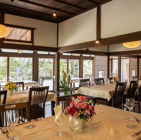水郷の街・佐原で約150年佇む古民家に、800坪の日本庭園が織りなす大景観がお楽しみいただけるレストラン『オーベルジュ・ド・マノワール吉庭』。四季折々の日本の良さを感じられる、庭園を彩る木々・花々に腕によりをかけて調理された食材たち。まさに五感で四季を感じられる、素敵なお食事のひとときをお楽しみください。