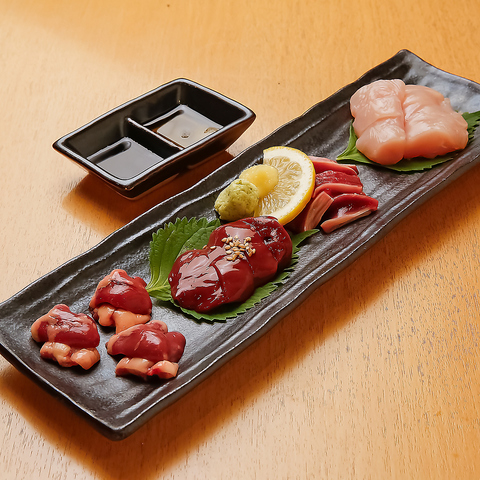 鮮度に徹底的にこだわった鶏刺しを贅沢に盛り合わせた一皿。部位ごとの食感や旨みの違いを楽しめる人気メニューです。シンプルな薬味と特製醤油で味わえば、さらに素材の良さが引き立ちます。初めての方にもぜひ試してほしいおすすめの逸品です。