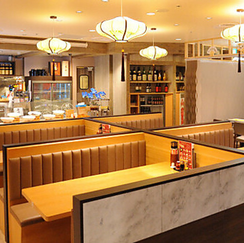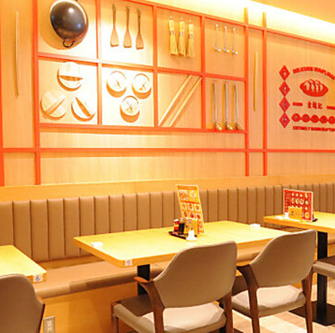 おしゃれな中華風の内装が施された店内は、広々としたテーブル席でリラックスしながら食事ができます。