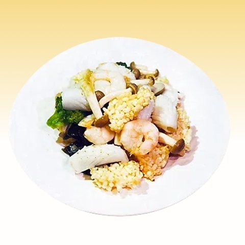 柔らかい牛肉を贅沢で炒めた一品。濃厚な旨味とコク深い味わいが広がります。