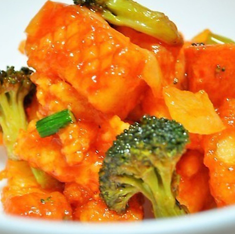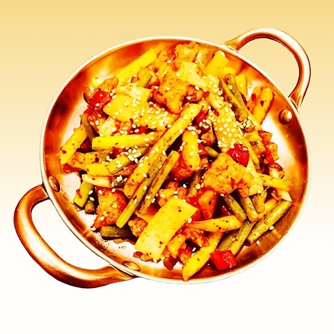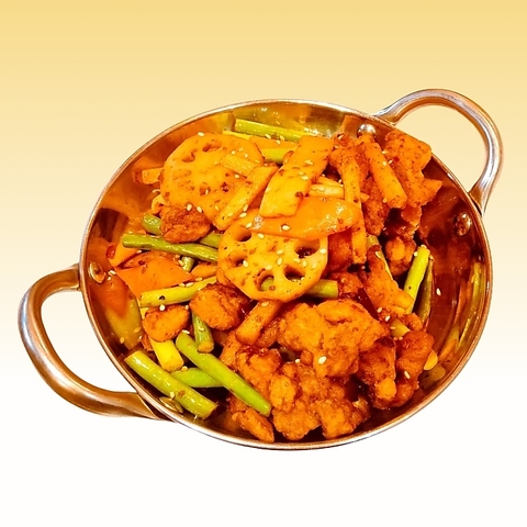 ジューシーな鶏肉を唐辛子と山椒で香ばしく炒めた一品。ピリッとした刺激とシビれる旨さがクセになります。