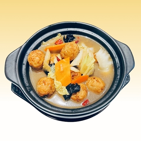 ジューシーな豚団子と旬の野菜をじっくり煮込んだ一品。野菜の甘みと豚団子の旨味が溶け合い、心温まる味わいです。