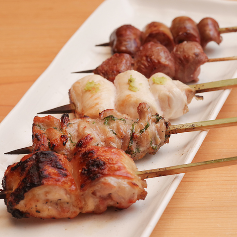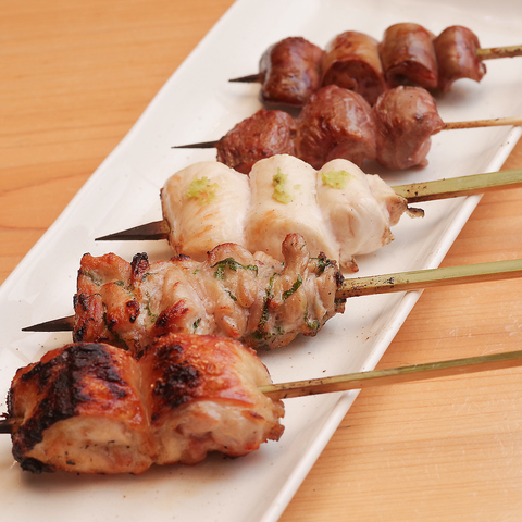 すべて自分たちで串打ちをし、部位ごとに違う銘柄鶏を仕入れ、こだわりの焼鳥を備長炭にて仕上げています。