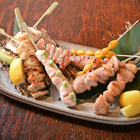 香ばしい備長炭の香りと地鶏本来の旨みが堪能できる、店長いちおしの串焼き盛り合わせ。全国の名産地から仕入れた銘柄鶏を1本1本丁寧に焼き上げています。部位ごとの食感や味わいの違いを楽しめるのも魅力。日本酒との相性も抜群の逸品です。