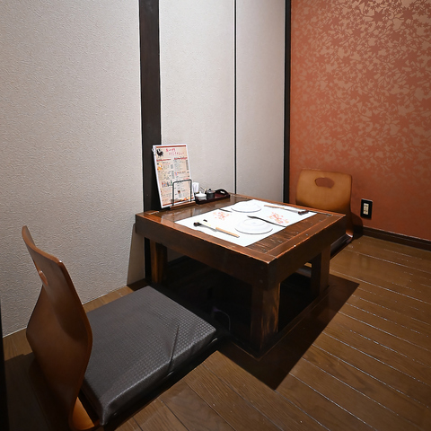 カウンター席、テーブル席、半個室風の空間まで、多様なニーズに対応できるレイアウトが特長。扉を取り外すことで、人数に合わせた調整も可能です。静かに過ごしたいおひとり様から、小規模な宴会や貸切利用まで、使い勝手の良さが支持されています。