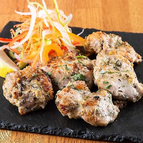 大山鶏を使用したチキンマライティッカ。生クリーム、チーズ、ヨーグルトと香り高いスパイスでマリネし、ジューシーに焼き上げました。クリーミーでやさしい味わいが楽しめる人気のインド風グリル料理です。