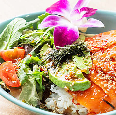 ハワイの定番フードも多数ご用意◎当店大人気メニュの「ポキ丼」は、サーモンとアボカドのポピュラーな組み合わせが人気の秘訣♪その他にも「ガーリックシュリンプ」など、ランチや早めのディナーにもピッタリなメニューが豊富!丼ものは+50円で大盛りも変更できるので、お腹を満たしたい方にもおすすめ♪
