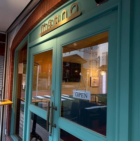 アンティーク調の木製テーブルが並ぶスタイリッシュな空間に、アクセントのカリビアンブルーが大人っぽく映える落ち着いた印象の内装です。日常のちょっとしたお食事に使いやすい2名様用テーブルを2卓、6名様用テーブルを1卓をご用意◎