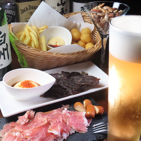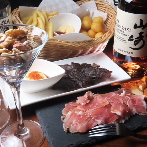 お酒との相性を考えた、バラエティ豊かなおつまみをご用意しました。ポテトフライや香ばしいナッツはお酒と一緒に楽しむのにぴったりな一品です。バリエーション豊かな味わいでお好みのドリンクと合わせて、あなたのリラックスタイムを贅沢に演出します♪