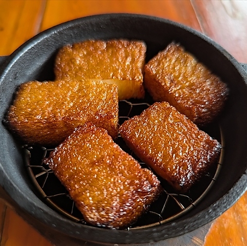 10時間かけてじっくりと低温調理された牛タンは、旨味をしっかりと閉じ込め、口の中でとろけるような食感を実現。サクラのチップで温燻仕上げにすることで、上品で香ばしい風味が加わります。岩塩とわさびを添えれば、牛タンの旨味が一層引き立ち、まさに味覚の爆発!一口食べれば、その旨味を実感できます!