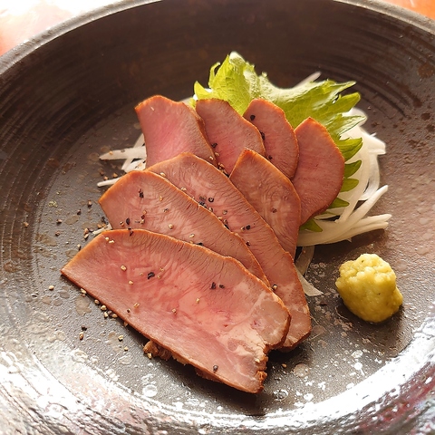 じっくり低温調理した『牛タン燻製刺身』温燻の香りとともに至福の旨味をお届け!