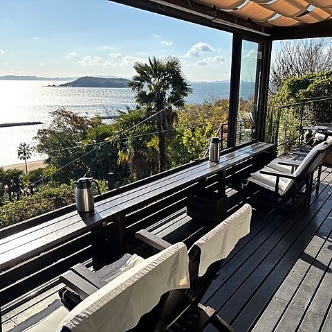 テラスから三河湾を一望できるエレガントなカフェです。コンセプトは「女性1人でもくつろげる癒しの空間」