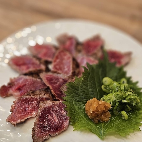 上質な和牛をさっと炙り、外は香ばしく、中はとろけるようなレアのまま。ひと口頬張れば、ジュワッとあふれる肉の旨みと、炙りの香ばしさが舌の上で華やかに踊ります。薬味のねぎやおろしポン酢が絶妙なアクセントになり、濃厚ながらも後味は驚くほどさっぱり。肉の旨みを最も引き出すための「ひと手間」によって完成された、至高の逸品です。