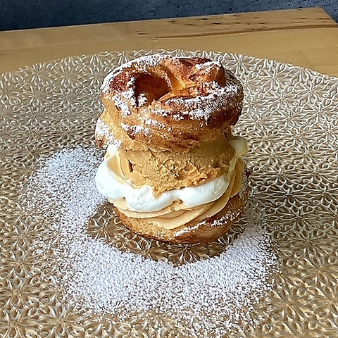 カスタードが美味しいパリブレスト!クリームの柔かさと自家製キャラメルジェラートのアクセントが◎