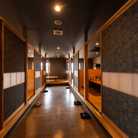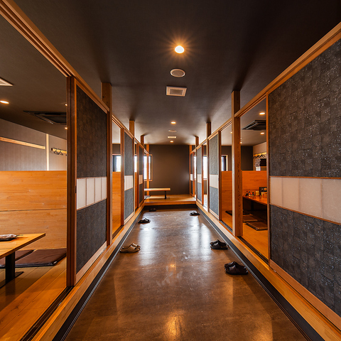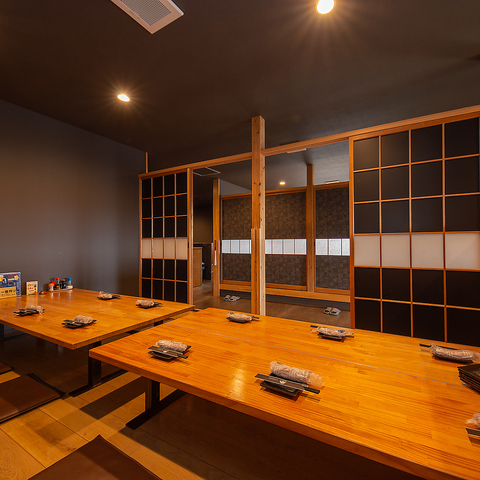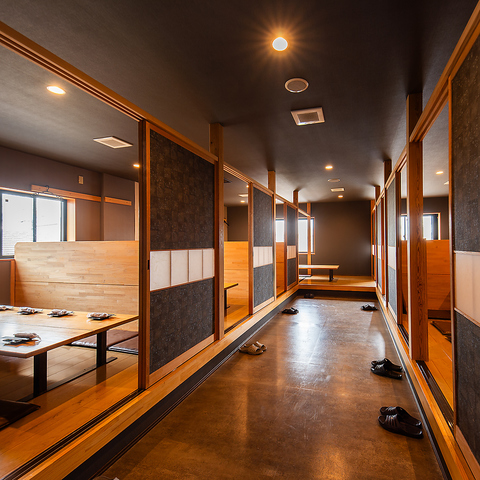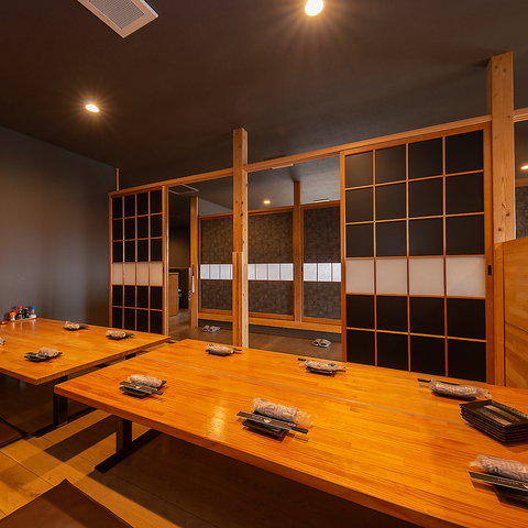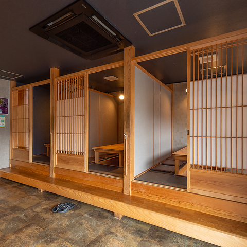 半個室・個室仕様。仕切りのある落ち着いた半個室が充実。周囲を気にせず、大切な方との食事や会話をゆったり楽しめます。