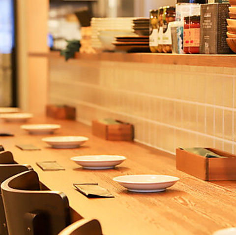 カウンター席は、お一人様やカップルにおすすめです。シェフが腕を振るう臨場感を五感で感じながら、できたて熱々のお料理をお楽しみいただけます。スタッフとの会話も弾み、心も体も満たされる至福のひとときをお過ごしください。
