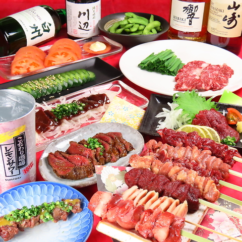 馬料理のメニューは馬刺しをはじめ、種類豊富な馬串をご用意。丁寧に焼き上げたこだわりの串はお酒との相性も抜群でどれを選んでもオススメです◎また、新鮮で瑞々しい馬刺しや海鮮、そして〆のご飯ものなど、一品料理の数々も美味しいものが揃いぶみ!その日の気分に合わせて、食べたいものを楽しむ至福の時間をぜひお過ごしください。