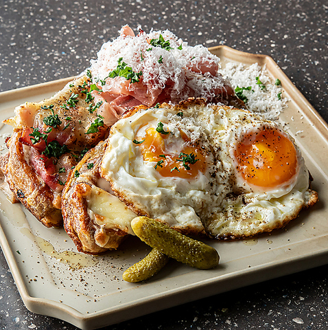 外はカリッと香ばしく、中はふんわりとろけるフレンチトーストに、ジューシーなソーセージととろりとした半熟のエッグを添えた贅沢な一皿。朝食はもちろん、ブランチにもぴったりな満足感たっぷりのメニューです!★サイズが大きいのでハーフサイズ出来ます1,380円(込1,518円)