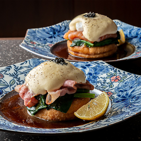 ランチメニュー上での記載をしておりますが、営業時間内【07:00~21:00】内の一日中ご利用いただけます。エッグベネディクトやクロックムッシュ、ブルスケッタプレートなど、朝食やブランチにぴったりのラインナップをご用意しました。ワインやコーヒーとともに、至福のひとときをお楽しみください。