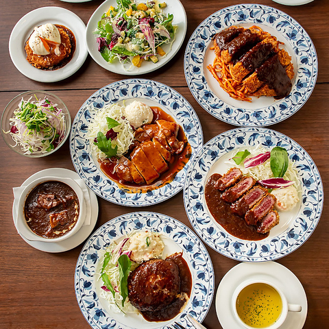 当店自慢の和牛100%ハンバーグや国産牛を使用した犇ハンバーグ。手仕込みのエビフライ・トンテキやパスタなど豊富な洋食メニューを取り揃えております。、