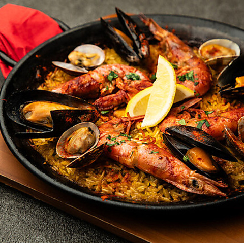 色鮮やかなサフランライスに、エビ、ムール貝、アサリなどの新鮮な魚介がたっぷり。豊かな海の香りと、旨味が染み込んだご飯が口の中で広がり、最後まで飽きずに楽しめるパエリアです。 M/L