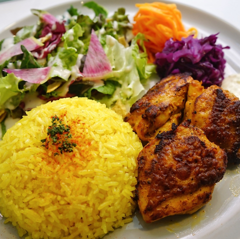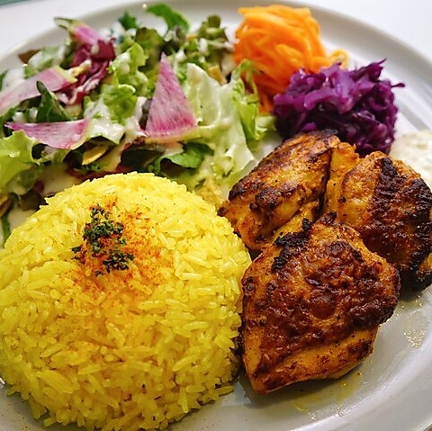 ランチ限定の「ケイジャンチキンプレート」は、アメリカ南部の人気料理をアレンジした一品。ニンニクや数種のスパイス、ヨーグルトにじっくり漬け込んだチキンソテーは、スパイシーな風味が食欲を強烈にそそります。ライス、サラダ、副菜、スープ付きでボリュームも満点◎午後の活力になること間違いなし!