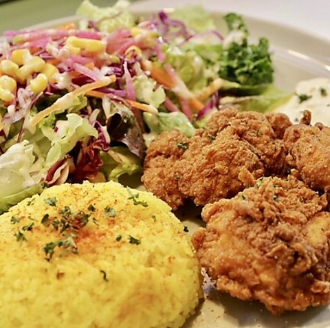 野菜たっぷりで栄養バランスの良い、ボリューム満点のランチプレート!ライス、サラダ、副菜、スープ付き◎