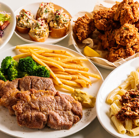 ジューシーなチキンやたっぷりのポテト、色鮮やかなサラダなどボリューム満点品々で、まるで本場アメリカにいるような贅沢な時間を。豪快な味わいと満足感を心ゆくまで楽しんでください!一件目はもちろん、二件目利用もお待ちしております!