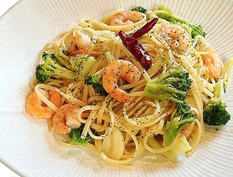 海老とブロッコリーのペペロンチーニ
