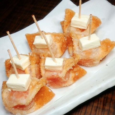 ほんのりピリ辛に味付けした濃厚エビチリソースと当店でチーズ餃子にも使用している、特別調合したチーズの相性が最高!