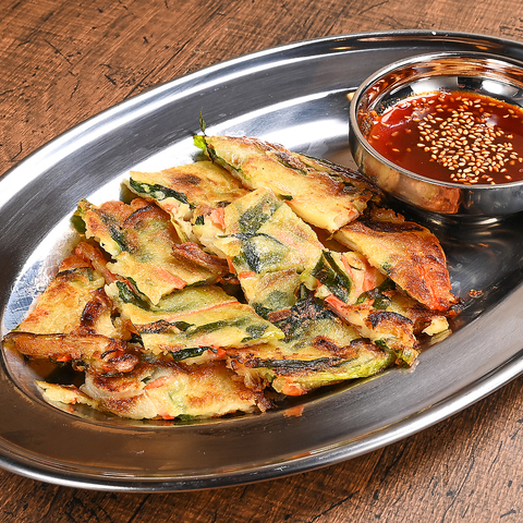当店のチヂミは、私たち自ら粉を配合して作り上げています。厳選した素材を使い、独自のレシピでブレンドされた粉は外側はカリッと、内側はモチモチの絶妙な食感。新鮮な野菜をたっぷりと使用し、風味豊かなチヂミに仕上げています。メニュー選びに迷ったら、まずは当店自慢の「ニラチヂミ」をお試しください♪