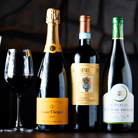 お食事やデザートと相性抜群のワインは、グラスワインからボトルまで取り揃えております。スパークリングワイン、赤ワインや白ワインなどぜひお好みのワインとお食事をご一緒にお楽しみください。