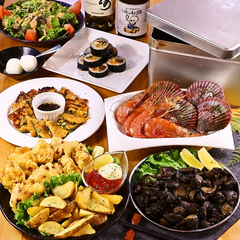 居心地の良さ抜群の居酒屋風の店内でお召し上がりいただくのは、街中にありながらも様々なお料理を楽しめる屋台スタイル♪鮮度抜群の絶品牡蠣料理や旨味がたっぷり詰まった鶏や豚の炭火焼き、本場でも大人気の絶品韓国料理など、屋台スタイルならではの色々なお料理をご堪能いただけます。お飲み物も種類豊富にございます!