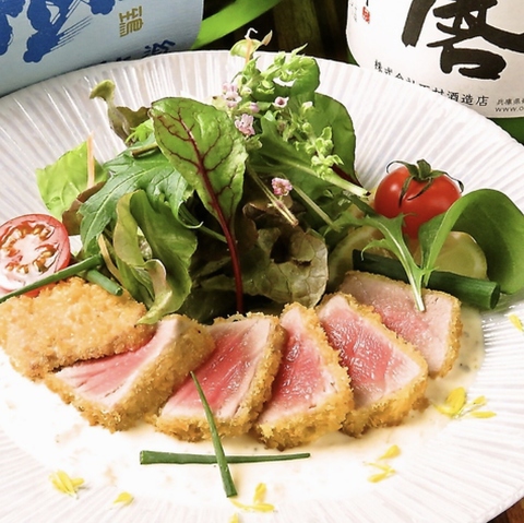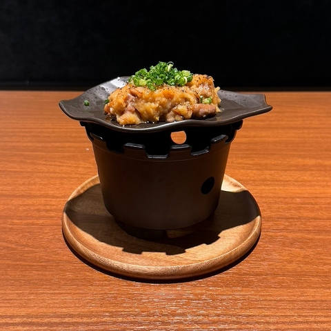 京都から直送される希少な「京鶏」を贅沢に使用。職人が豪快に炙ることで、皮はパリッと香ばしく、中は驚くほどジューシーで弾力ある食感に!噛むほどに溢れる濃厚な旨味と上品な脂の甘みは、一度食べたら忘れられない至福の味わい。希少価値の高い「京」の味覚を、ぜひご堪能ください!※画像は「タタキ」です。