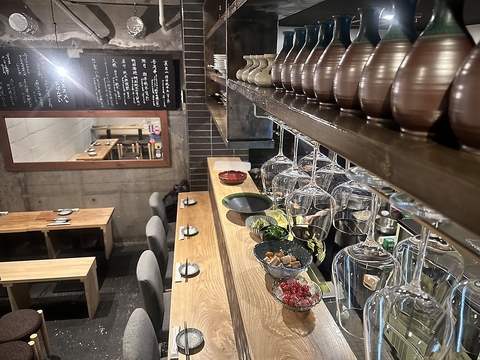 【カウンター席やテーブル席をご用意】お一人様からグループまで対応可能なカウンター席とテーブル席をご用意◎オープンキッチンカウンターには自慢の一品料理が並び、調理風景も見られるので、目でも楽しみながらゆったりした時間が過ごせます♪木の温もりを感じるテーブル席はグループでの飲み会などにもおすすめです◎