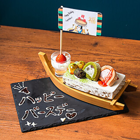 記憶に残るサプライズ!大切な記念日を最高に盛り上げる、驚きの船盛りデザートプレート!まるで宝船のような豪華さに、思わず歓声が上がること間違いなし。特別な日を彩るサプライズにぴったり。忘れられない思い出作りに、ぜひご利用ください!