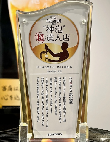 神泡・【超達人】の認定いただけました!おいしい生ビールでご来店お待ちしております!