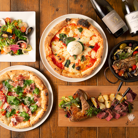 本格ナポリピッツァや窯焼き料理が食べれる宴会コースは120分飲み放題付6000円~ご用意!