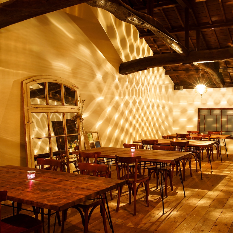 おしゃれにこだわり、世界各地のヴィンテージが集まった店内は雰囲気抜群!!照明から暖かい雰囲気に包まれ、落ち着いた店内を演出いたします♪1階席は少人数でもご利用いただけるテーブル席をご用意しておりますので、シーンに合わせてご利用可能です。