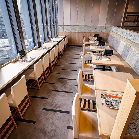 広々としたテーブル席は、明るく開放的な雰囲気で、友人同士やご家族連れに人気。自然光が差し込む昼間は、季節の彩り豊かな料理がより一層映えます。ゆったりとした座席配置で、会話も弾む心地よい空間です。